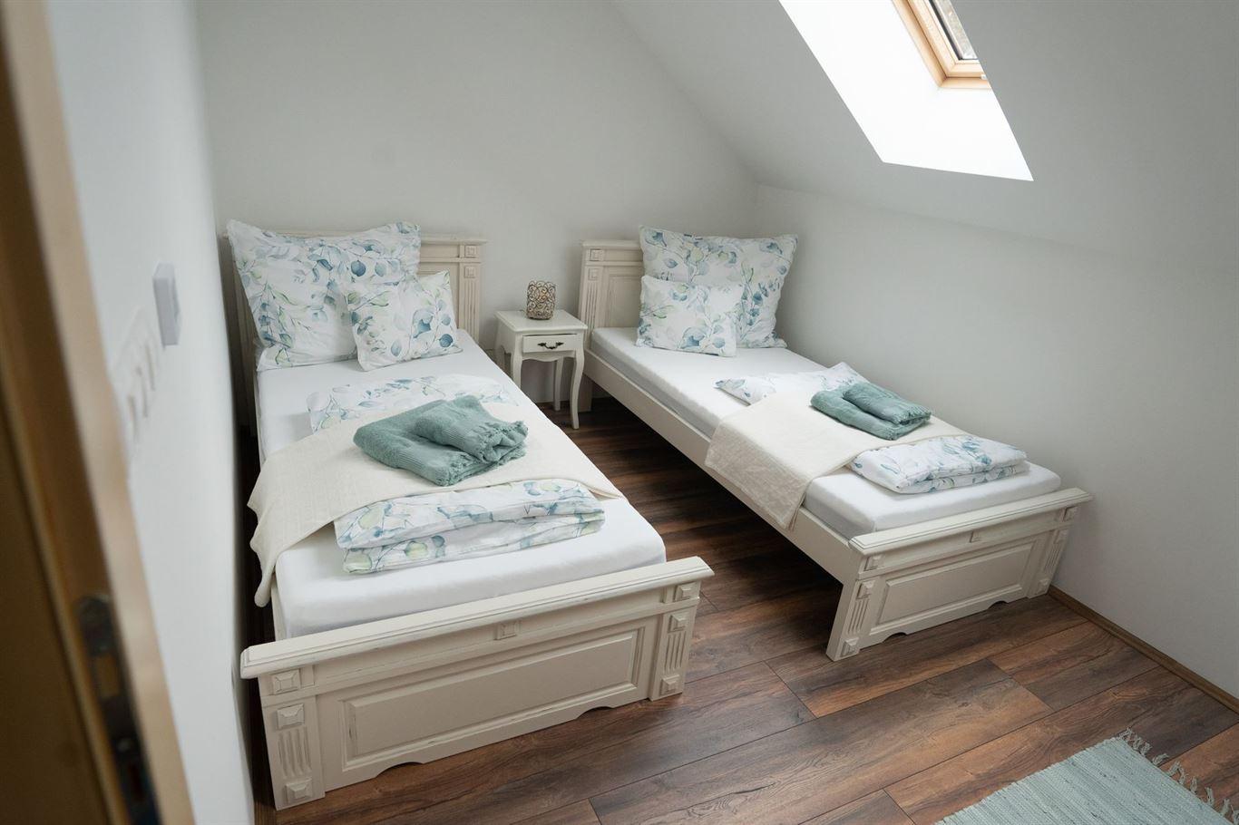 A szállás 4 apartmannal és 4 tetőtéri szobával várja a vendégeket, melyek mindegyike saját fürdőszobával rendelkezik. A terek kialakítása alkalmas arra, hogy a vendégek együtt tudják élvezni a közös programokat, mégis megmaradjon személyes komfortjuk. Zárt körű foglalással a ház teljesen csak a Tiétek lehet.