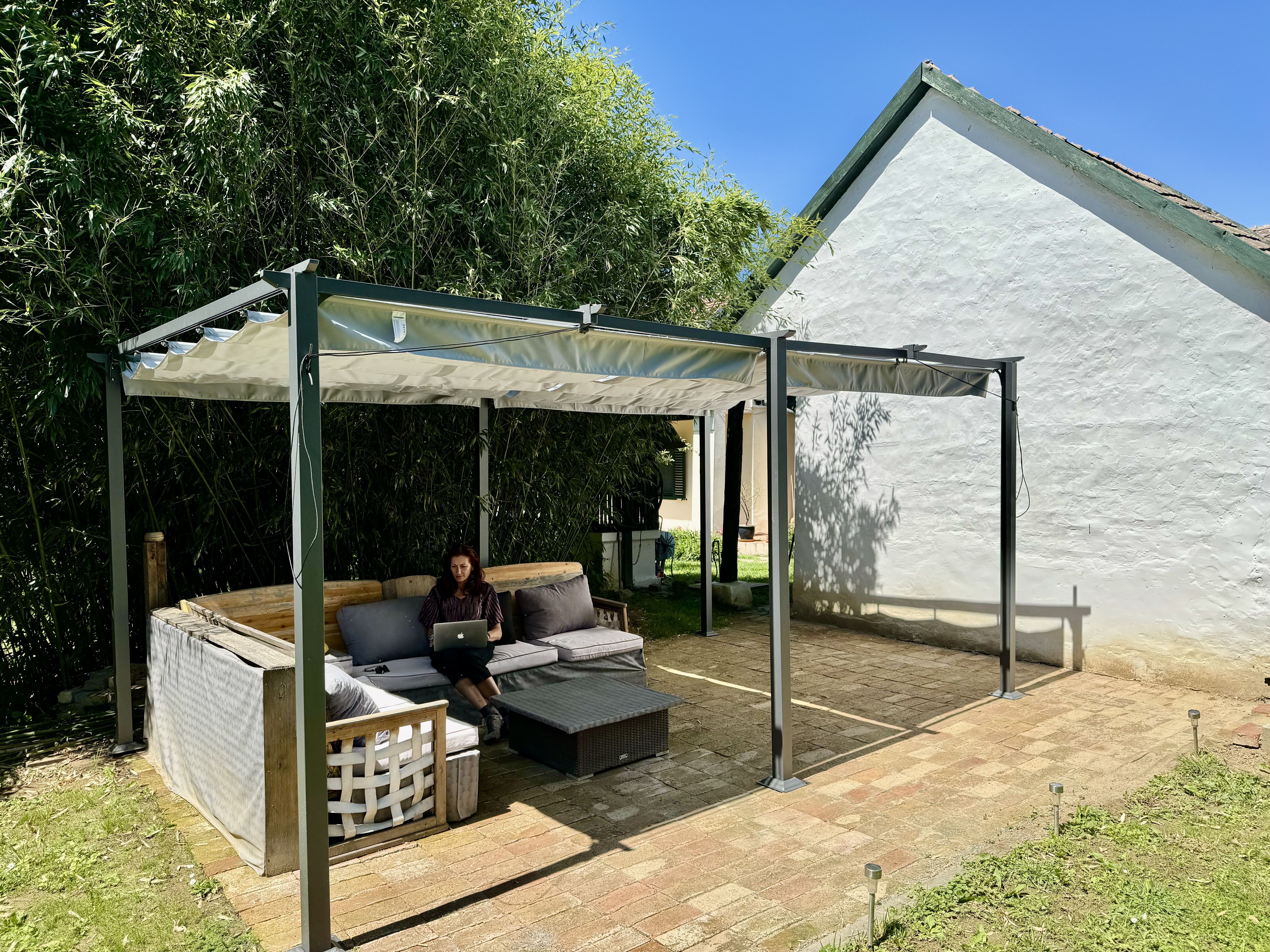 💦 Fedett terasz, és kerti pergola a bambuszliget mellett