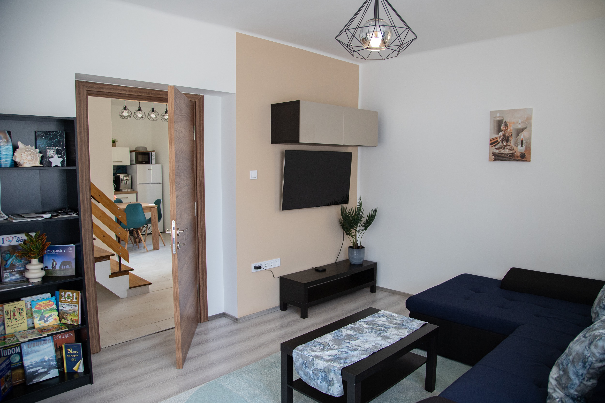 Külön érdekesség, hogy a Fő tér harangjátéka is áthallatszik a kertbe – mégis csendes az utca, alig van autós forgalom, így a nyugalom és a városi kényelem itt valóban kéz a kézben jár.