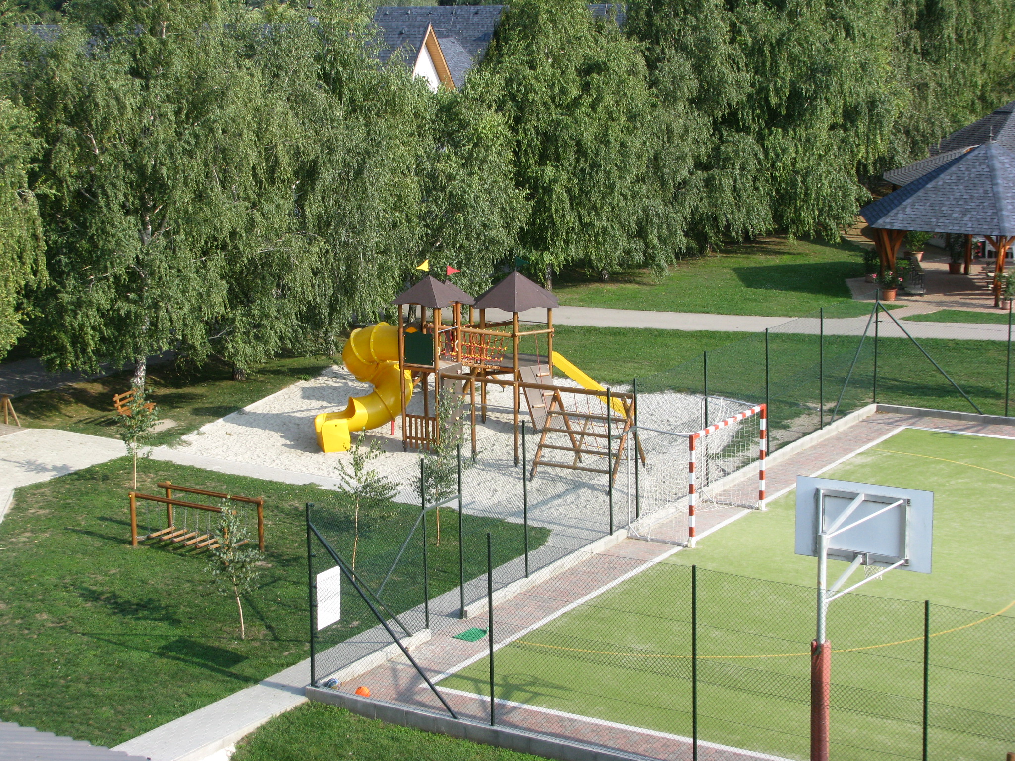 Sportpályák, háromtornyú kalandvár, kerékpárok, játékterem és medence is rendelkezésre áll – így a több mozgásra vágyók sem maradnak program nélkül.