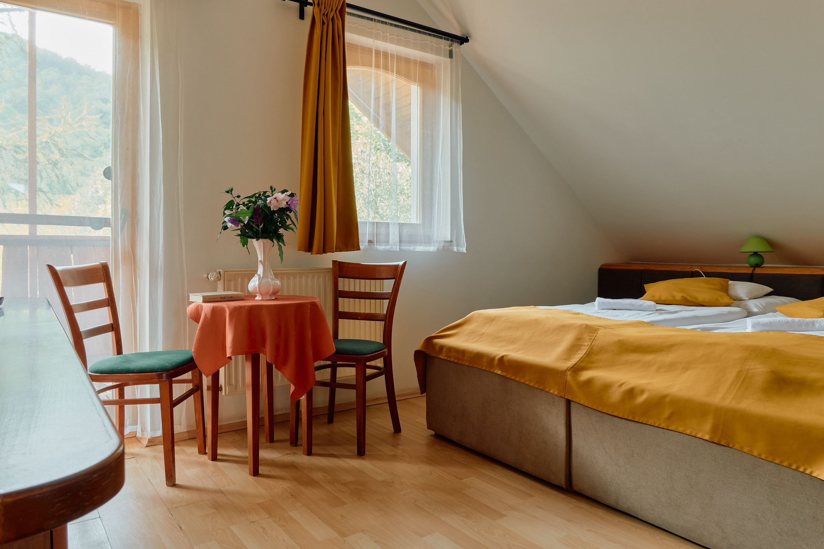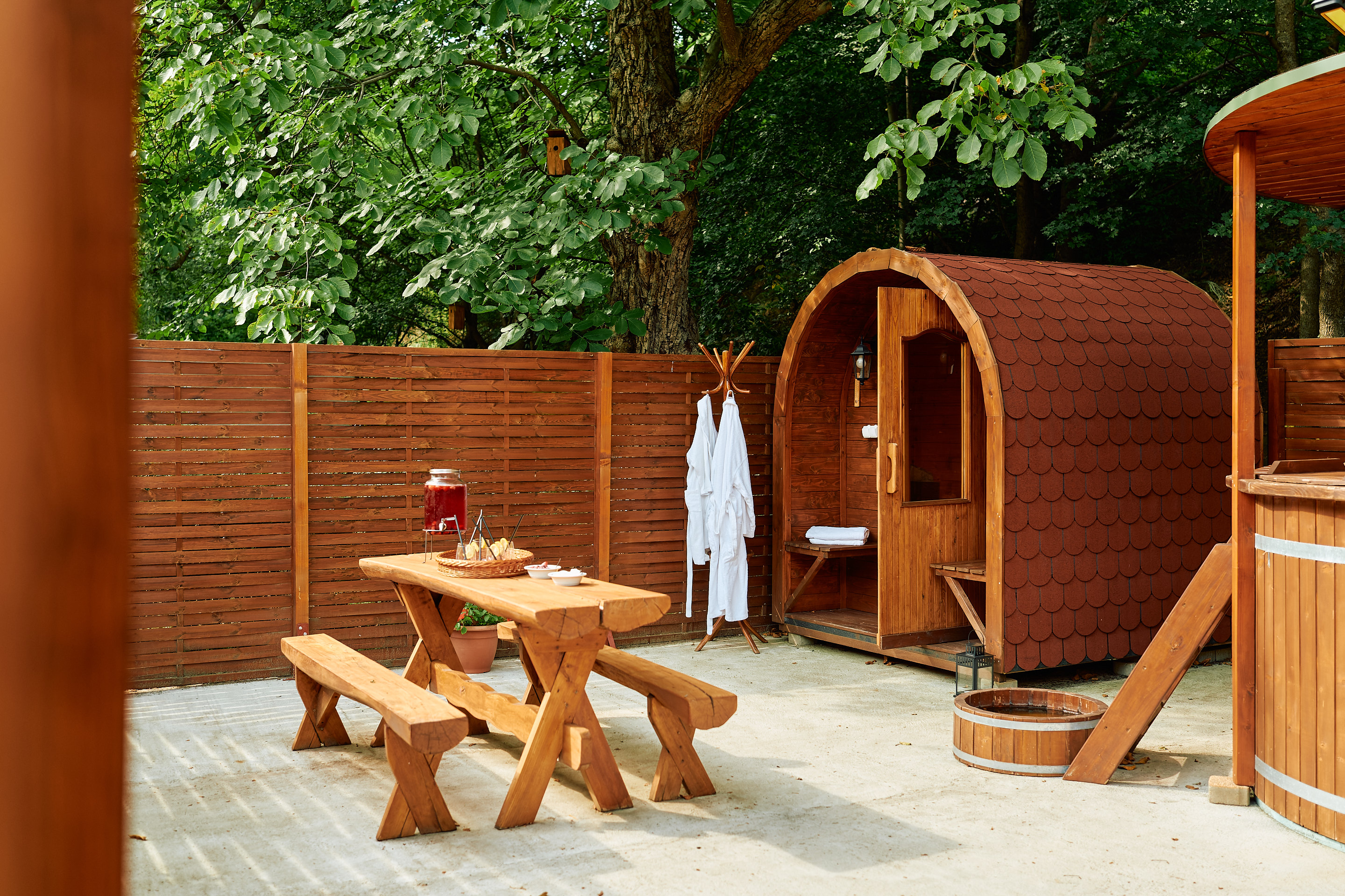 A fél hektáros, ősdiófákkal tarkított parkban elhelyezkedő, családias hangulatú szálláshely allergénmentes minősítéssel rendelkező, kutyabarát erdei panzió és kemping, ahol a modern, hegyvidéki stílusban felújított szobák kényelmes pihenést biztosítanak. A vendégek kikapcsolódását kültéri, fűthető sós vizű fürdődézsa, finn szauna és sörfürdő teszi teljessé. A szubalpin klímának köszönhetően a nyári hónapokban a hőmérséklet akár 8–10 °C-kal is alacsonyabb lehet, így a környék a melegebb időszakban is kellemes kirándulóhely.