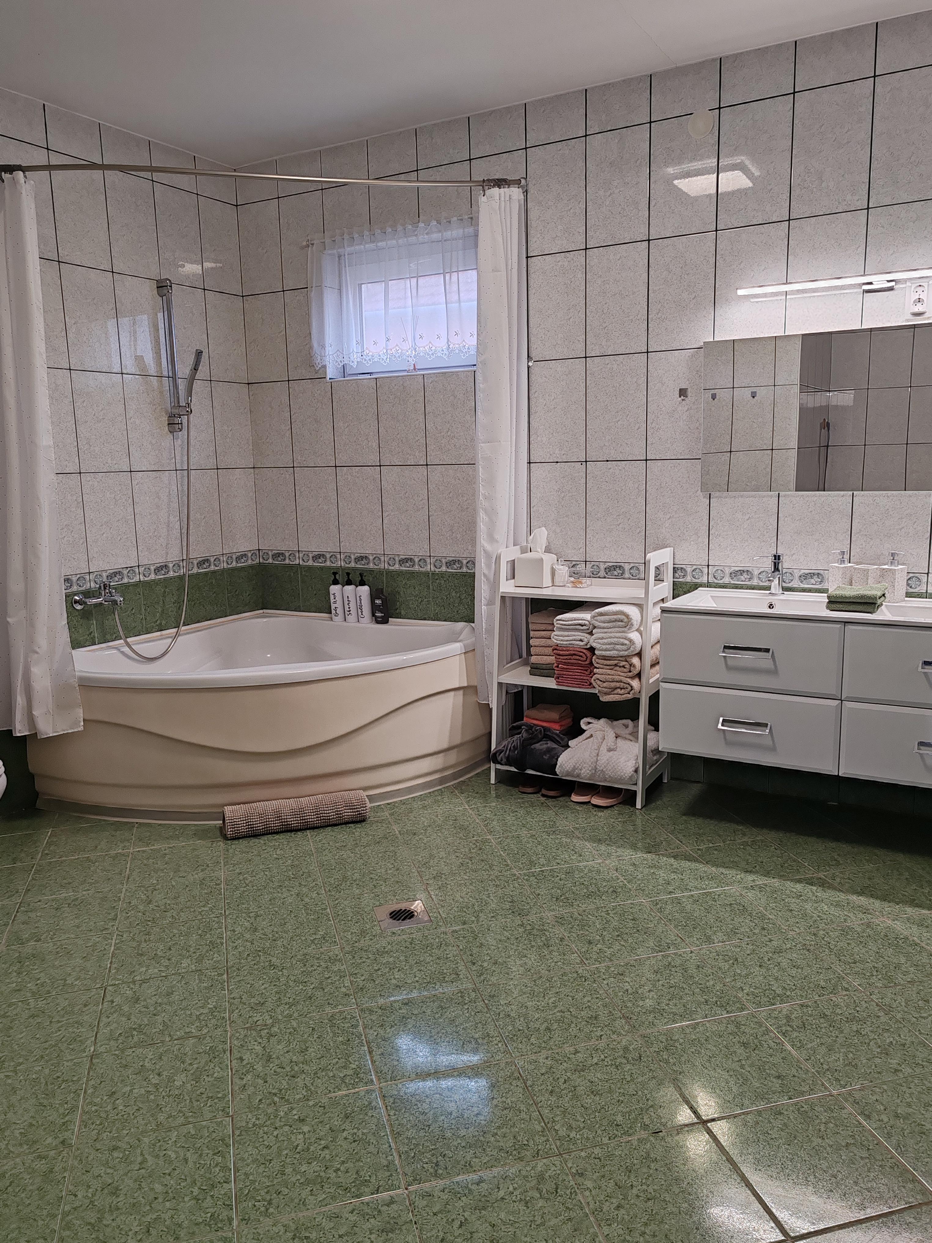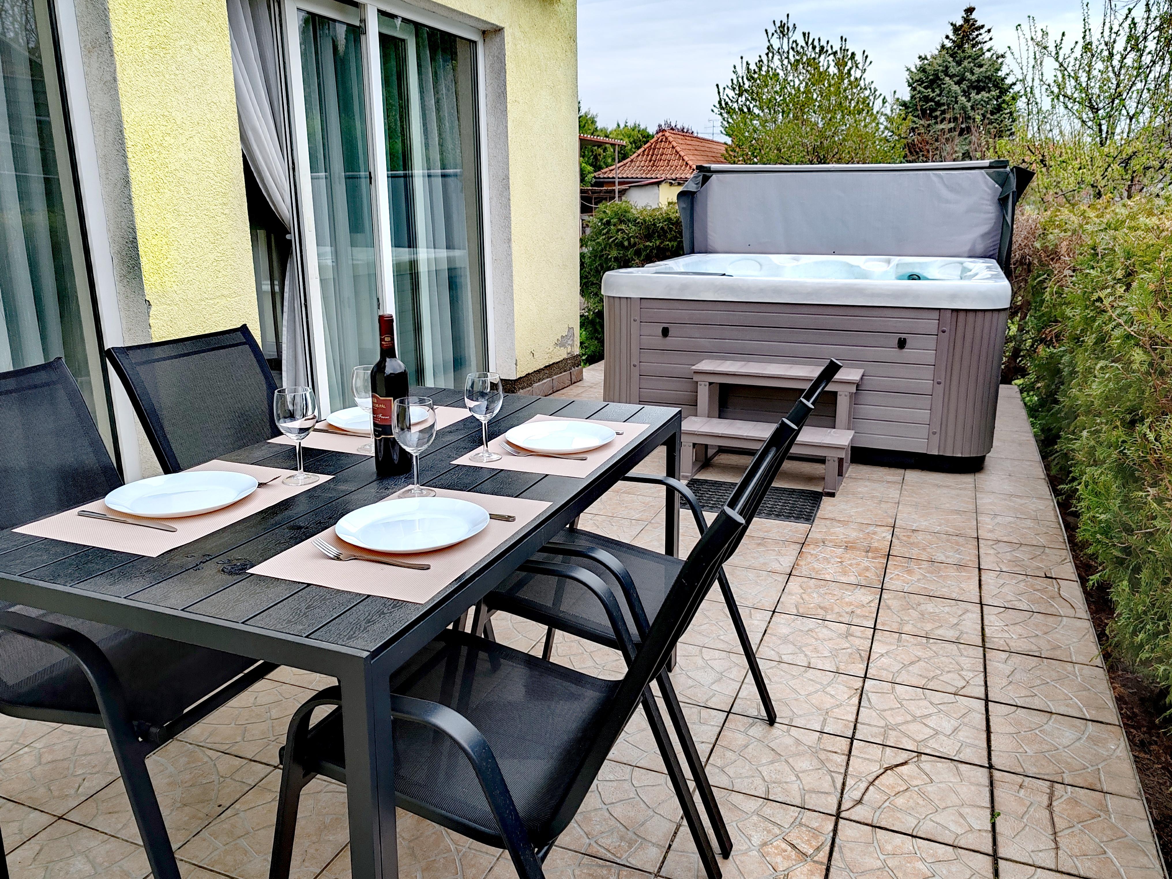 Ideális választás családoknak, baráti társaságoknak, üzleti úton lévőknek és mindazoknak, akik szeretik a tágas tereket, a kényelmes együttlétet és a pezsgőfürdő nyújtotta feltöltődést amely akár csapatépítők helyszíne is lehet. A ház központi része a napfényes, amerikai konyhás nappali, amely már a reggeli órákban is barátságos, világos hangulatot áraszt. A nappaliból közvetlenül a teraszra léphettek, ahol a reggeli kávé, a napfürdőzés vagy egy kellemes vacsora is igazi élmény. Télen a friss levegő, nyáron a napsütés teszi különlegessé a jakuzziban töltött perceket, amelyek garantáltan segítenek lelassulni és feltöltődni.