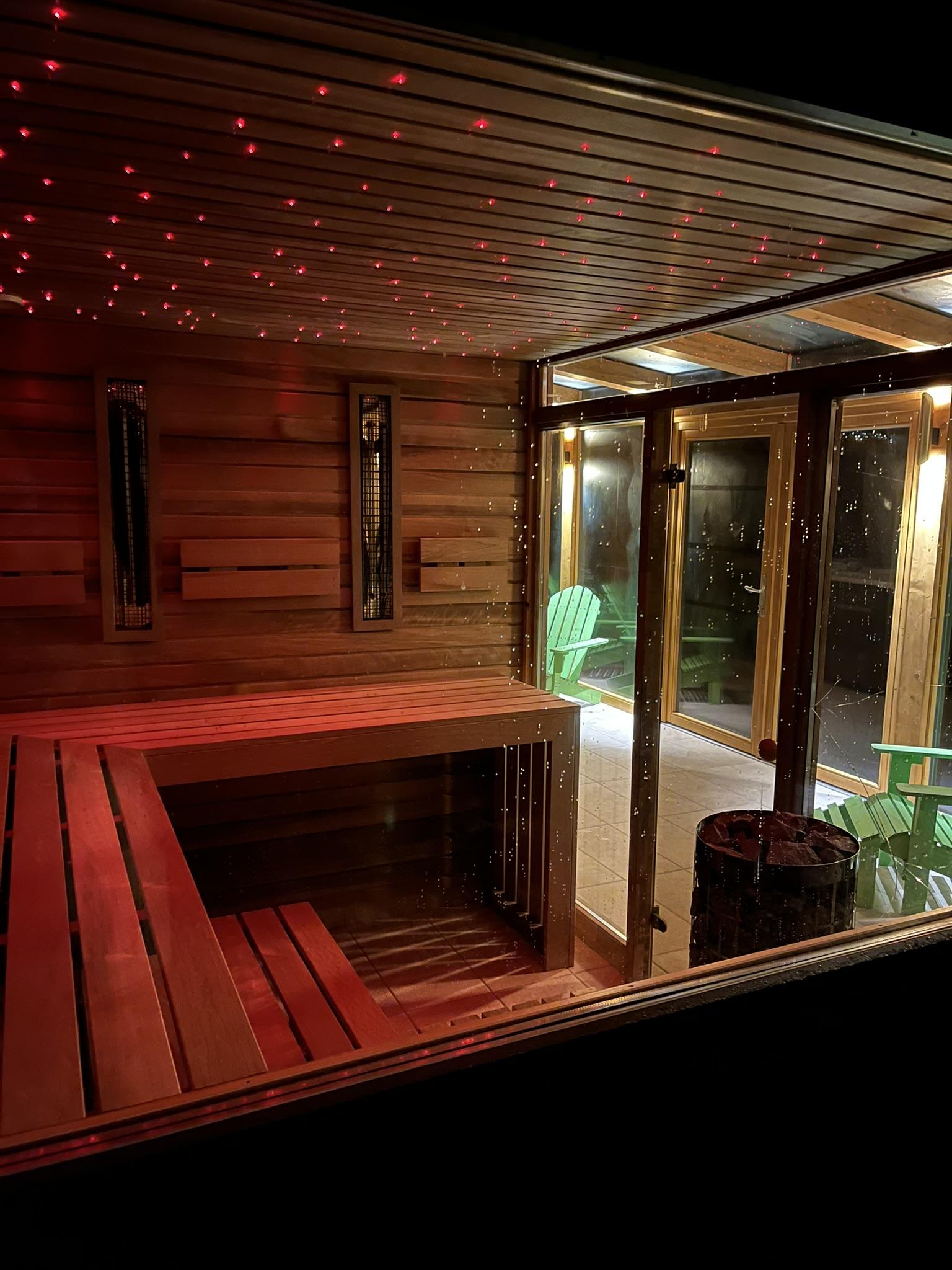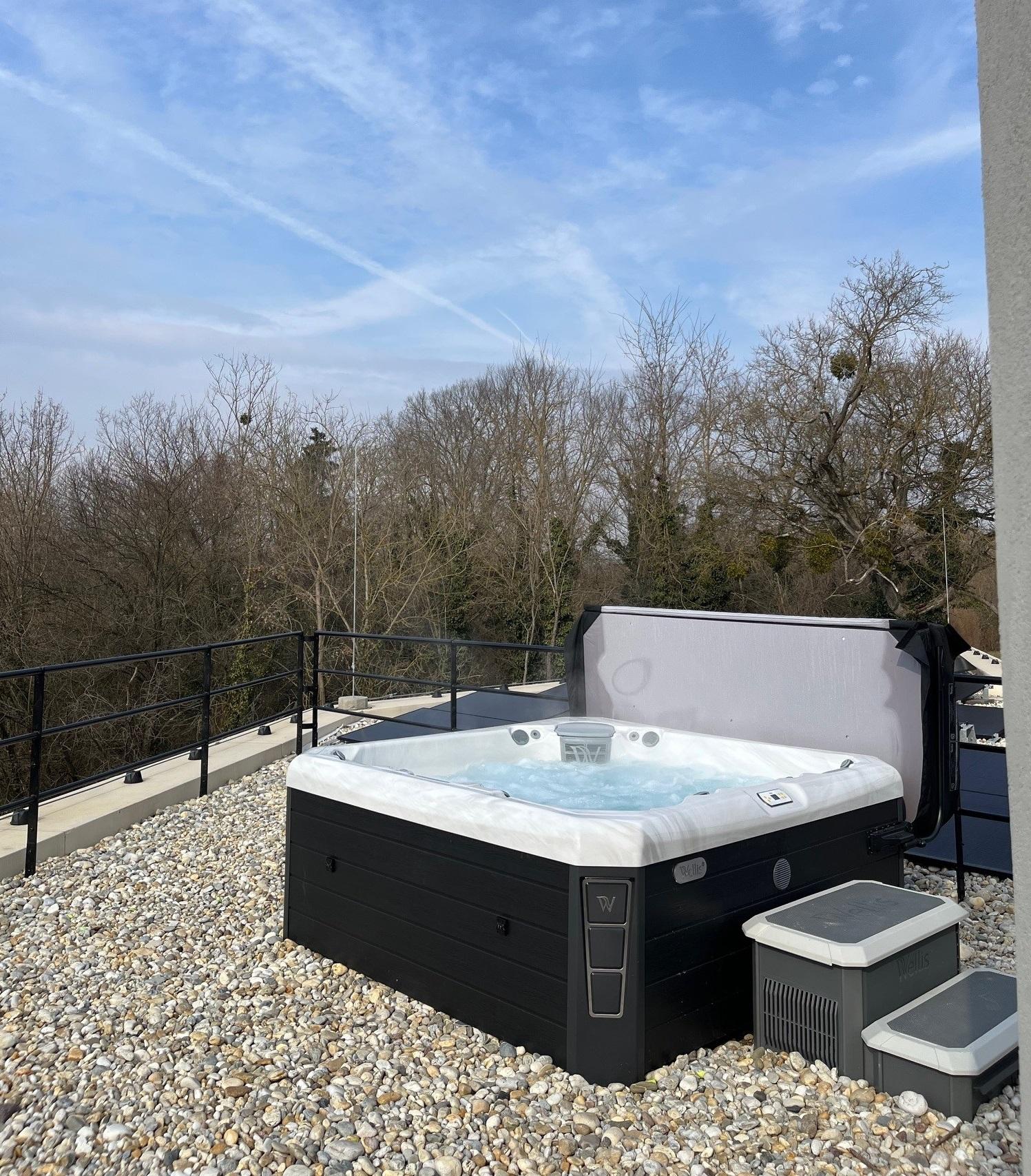 - Mini wellnessünk 6 fős jacuzzival és 6 fős szaunával kényeztet, de lehetőség nyílik egy tetőtéri, nyitott jacuzziban gőzölgő forró vízben pihenve bámulni a fényszennyezettség nélküli csillagos égboltot;